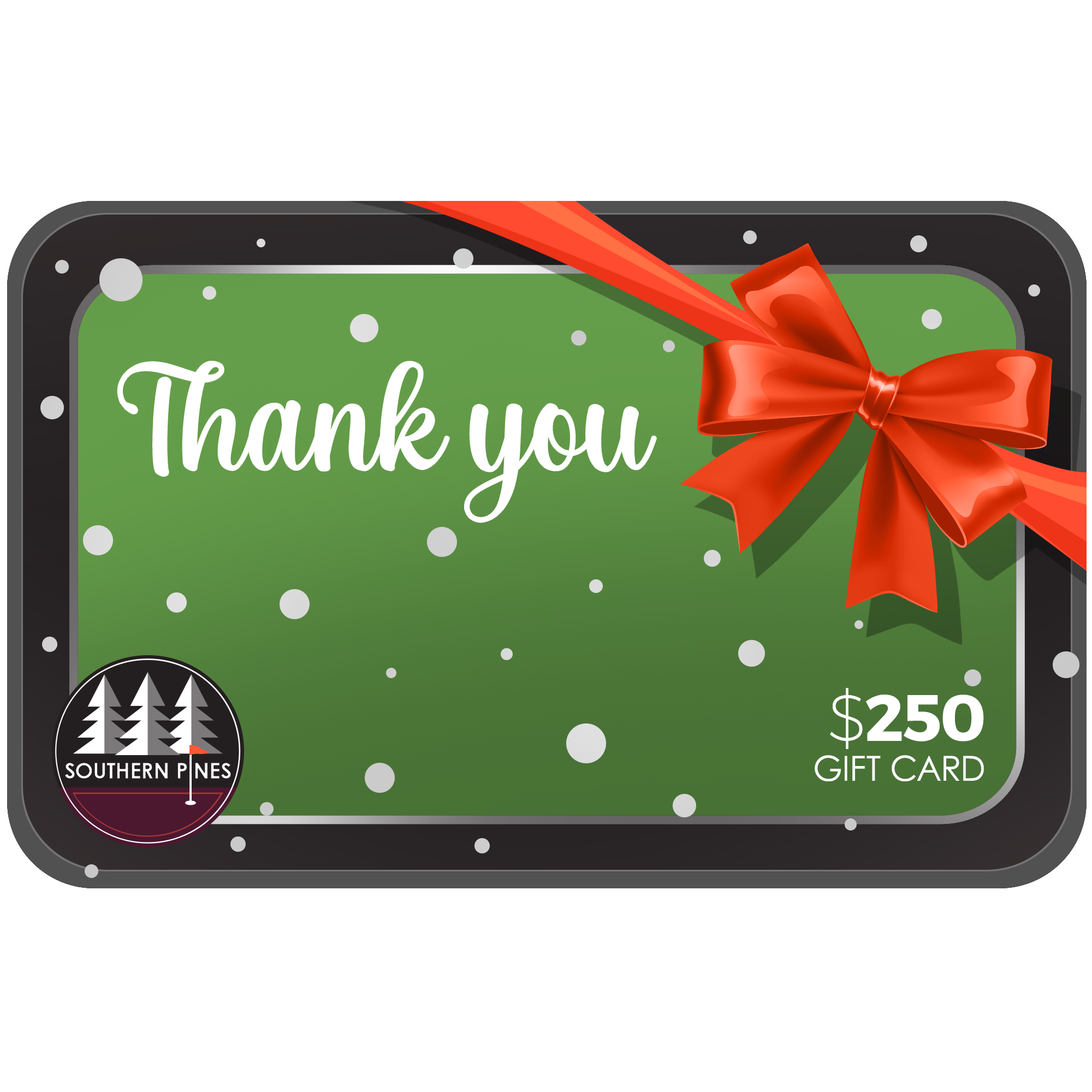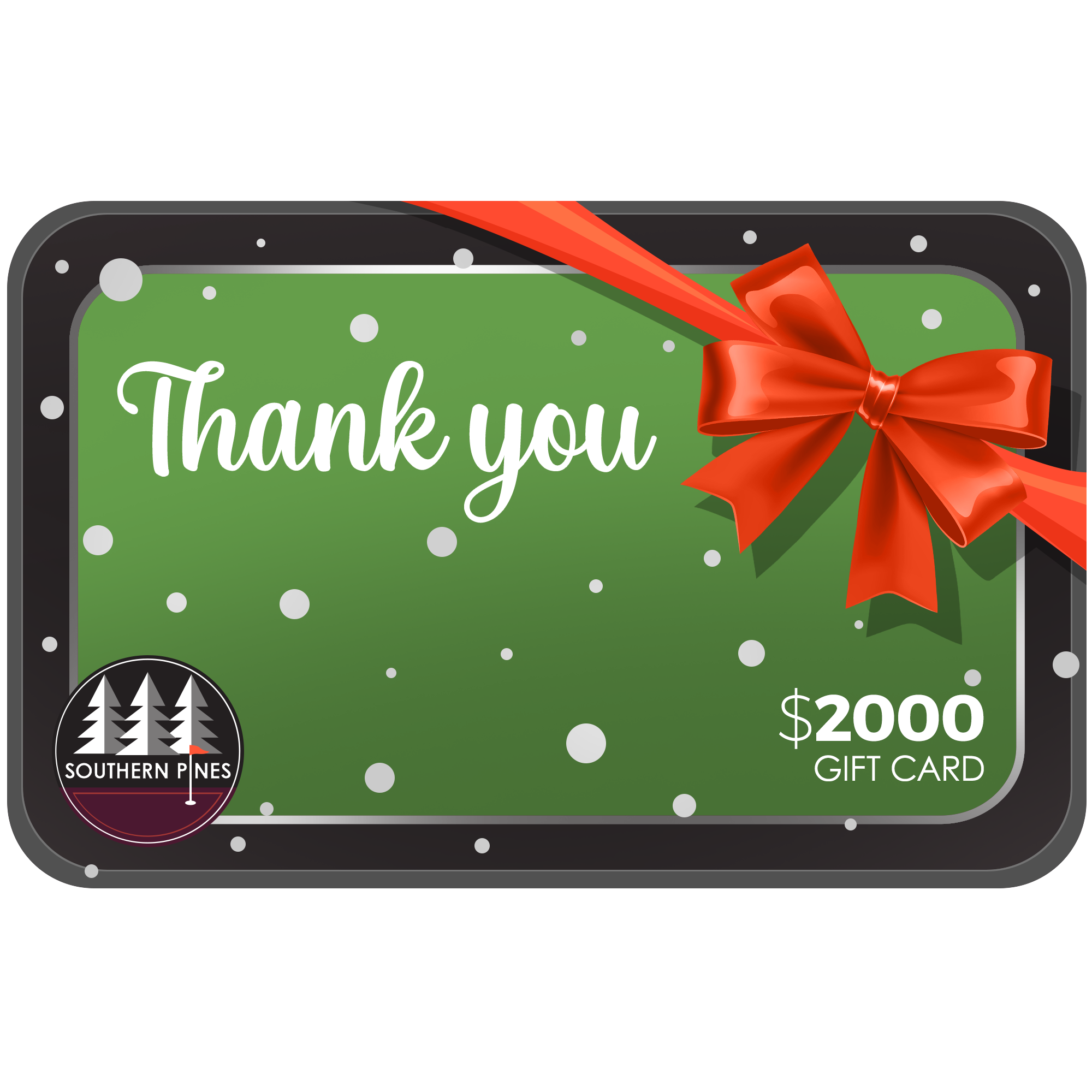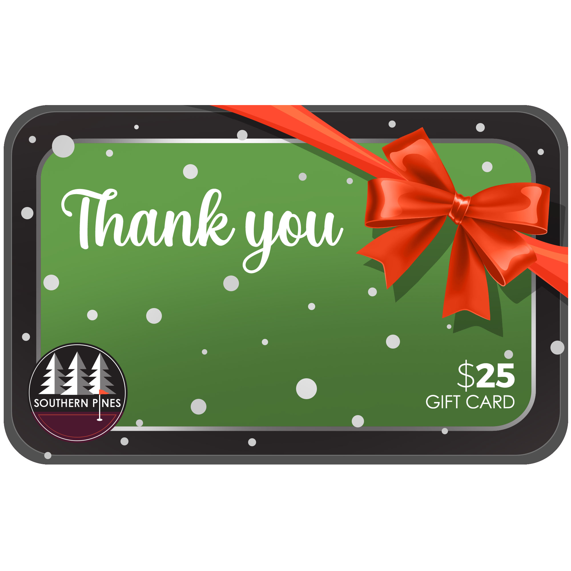 Select The Southern Pines Gift Card that best suits your gifting needs. We offer a range of denominations, from $25 to $2000, allowing you to pick the perfect value for your recipient.
