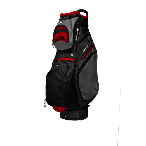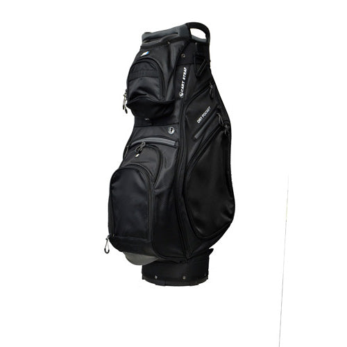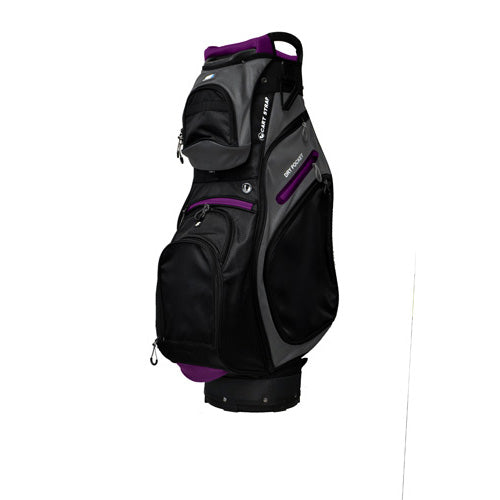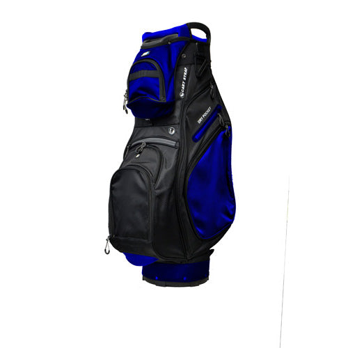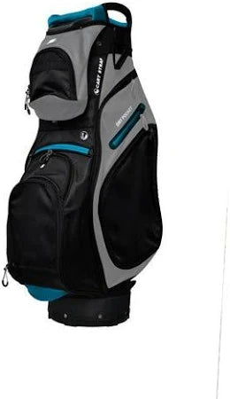 Stay ahead on the course with the Golf Trends Country Club Cart Bag. Its 15-way top organizer neatly arranges your clubs, including a dedicated oversized putter well for quick access. With 10 pockets, including a large cooler pocket, you’ll keep snacks, drinks, and valuables perfectly organized. The easy-lift top pouch and ergonomic handles ensure effortless handling, while the towel and glove holder add convenience. Lightweight at just 9 lbs, this bag combines style and function with a removable panel ready for your custom embroidery flair. Make your golf game as fun as your gear!
